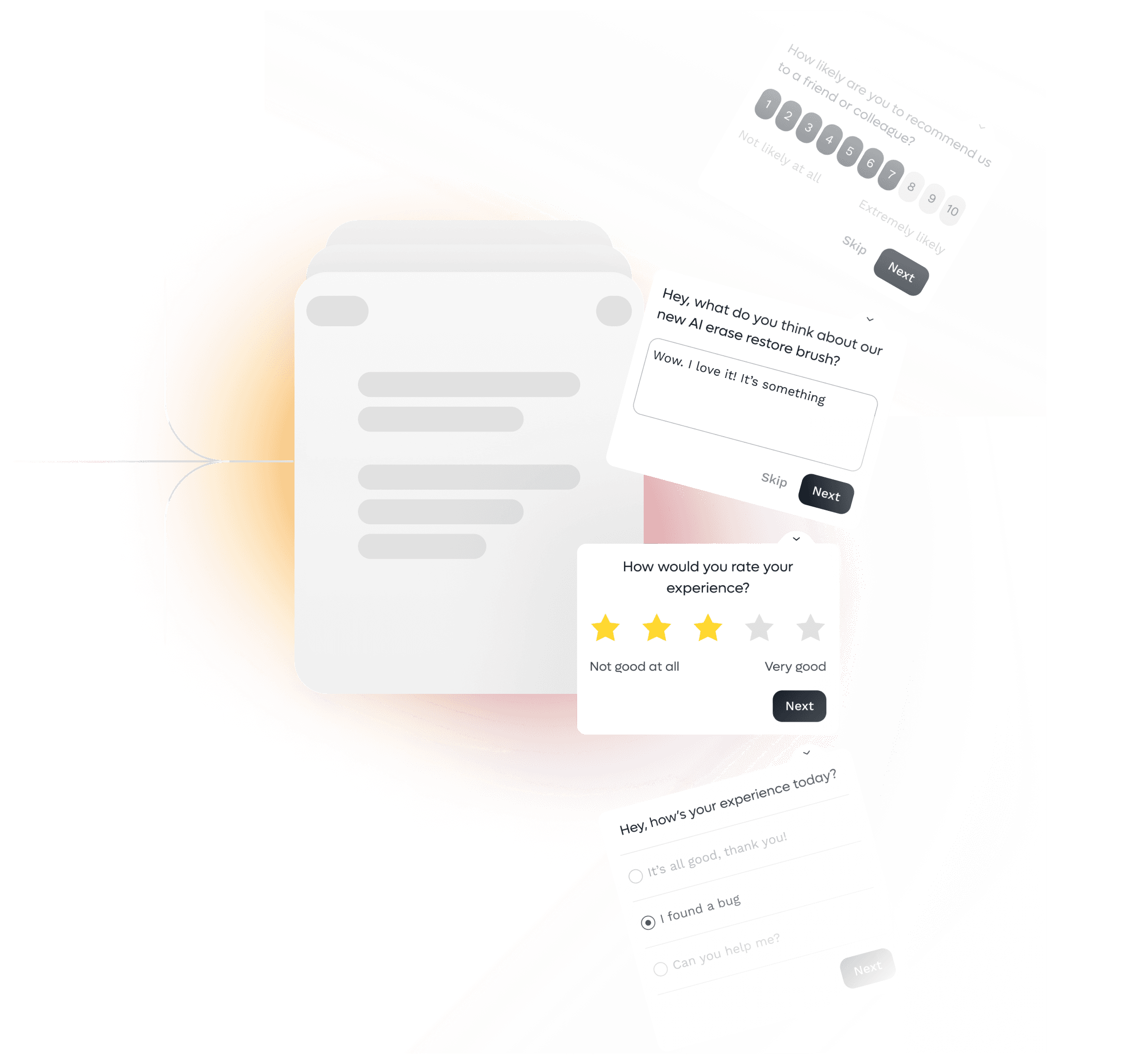 Not only precise targeting and segmentation capabilities allow Monolytics to effectively collect feedback from your visitors and clients. Our diverse types of questions and reactions will help you find the best approach to your audience.